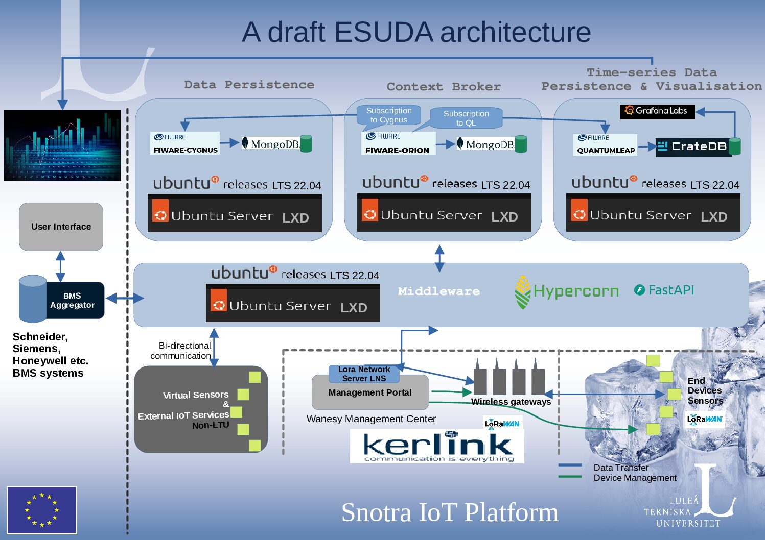 • ESUDAS IoT-arkitektur, baserat på Snotra IoT-plattform